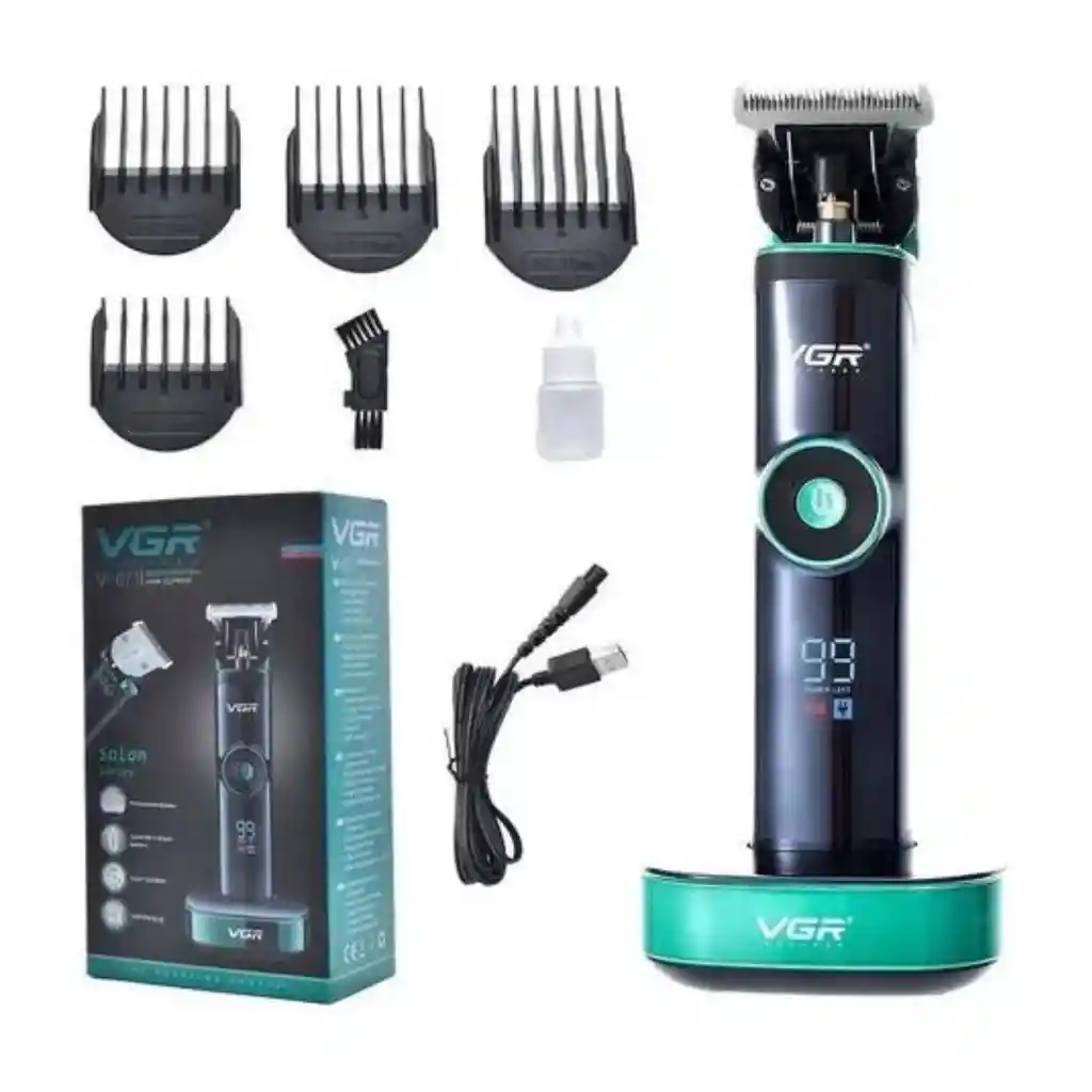 Cortadora De Pelo Barba Recargable Usb Panel Led Vgr V-671 MAQUINA CORTA PELO BARBA VGR V-671 RECARGABLE USB CON BASE DE CARGA EL TRATAMIENTO DE ÁNGULO NO DAÑA LA PIEL: el cabezal de la cuchilla y otras partes que tocan la piel se tratan con un ángulo R especial, que es seguro y no daña la piel PANTALLA LED: indicador de minutos restantes, indicador de carga, indicador de velocidad de funcionamiento. REGULADOR DE LONGITUD DE CUCHILLAS: en la parte de atrás del cabezal encontrará una perilla, al moverla cambiará entre las diferentes alturas disponibles: 0.4mm, 0.6mm, 0.8mm, 1mm, 1.2mm. CUCHILLAS DE ACERO INOXIDABLE: las cuchillas están hechas de acero inoxidable, lo que mejora considerablemente el rendimiento de corte. Además, este diseño garantiza que la cortadora sea duradera. DOS MÉTODOS DE CARGA: conectar a la máquina para cargar con el cable USB o colóquela sobre la base de carga. ESPECIFICACIONES: Modelo: VGR V-671 Peso: 420g Tamaño: 19X4.2X4 cm Tiempo de uso: 400 min. Tiempo de carga: 3,5 horas Voltaje: 100-240v - 50/60Hz Potencia: 10 W Velocidad: 7000+/-500RPM Batería: 2500 mAh Material de la cuchilla: Acero inoxidable Material del cuerpo: ABS Tamaño de corte: 3/6/9/12 mm Método de limpieza: Lavado de cabeza Método de carga: Conector USB