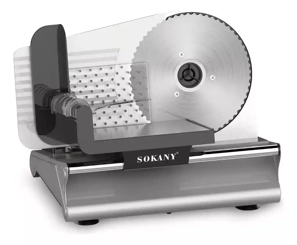 La cortadora y rebanadora de cecinas/fiambres de 500W es una máquina de alta potencia, diseñada para cortar pan de carne de cordero con precisión y eficiencia. Con dimensiones de embalaje de 405*300*300MM y un peso de 4,4 kg, es compacta y fácil de manejar. Esta cortadora funciona con un voltaje de 220-240V, lo que la hace ideal para uso industrial. Su marca, Sokany, es reconocida por su calidad y durabilidad. El modelo SK 446 viene en un elegante color plateado, que le da un toque de sofisticación a cualquier cocina. Una de sus características más destacadas es su grosor ajustable, que permite cortar las cecinas a la medida exacta que se desee. La cuchilla de corte está hecha de acero, garantizando cortes limpios y precisos. Además, cuenta con un afilador incorporado, lo que asegura que la cuchilla esté siempre afilada y lista para usar. El material principal de la cortadora es acero, lo que la hace resistente y duradera. Esta cortadora y rebanadora es una herramienta indispensable para cualquier cocina industrial.