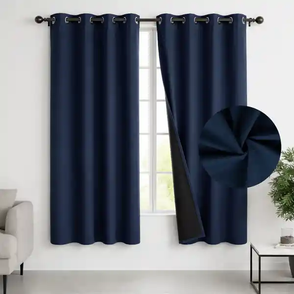Cortina 100% Blackout Casatua 2 Paños De 160 X 135cm - Azul Marino