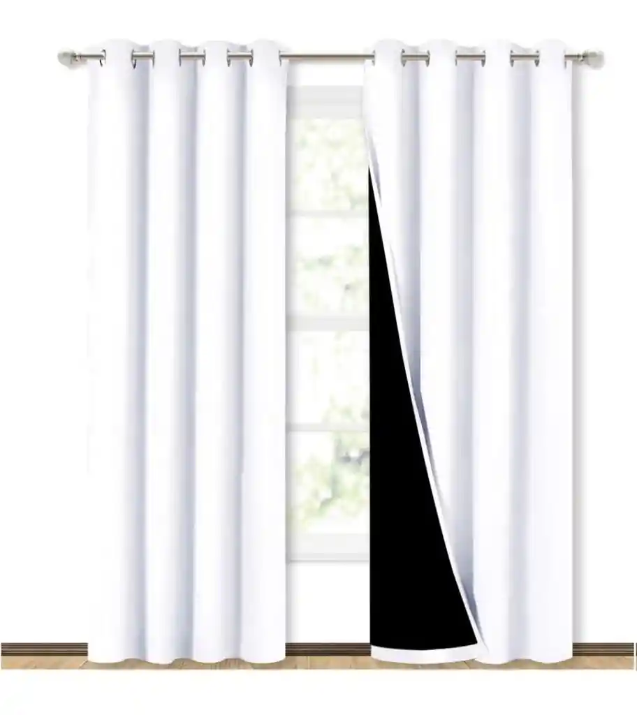 Cortina Aislante 100% Blackout X3 Doble forro (un lado negro y el otro blanco) Listas para colgar: 3 paneles de cortinas opacas por paquete. Cada cortina opaca con forro clásico mide 132 cm de ancho x 213,3 cm de largo. El diseño único del ojal plateado (diámetro interior de 4 cm) crea una elegancia casual para tu casa y hace que las cortinas sean fáciles de instalar y deslizar.
