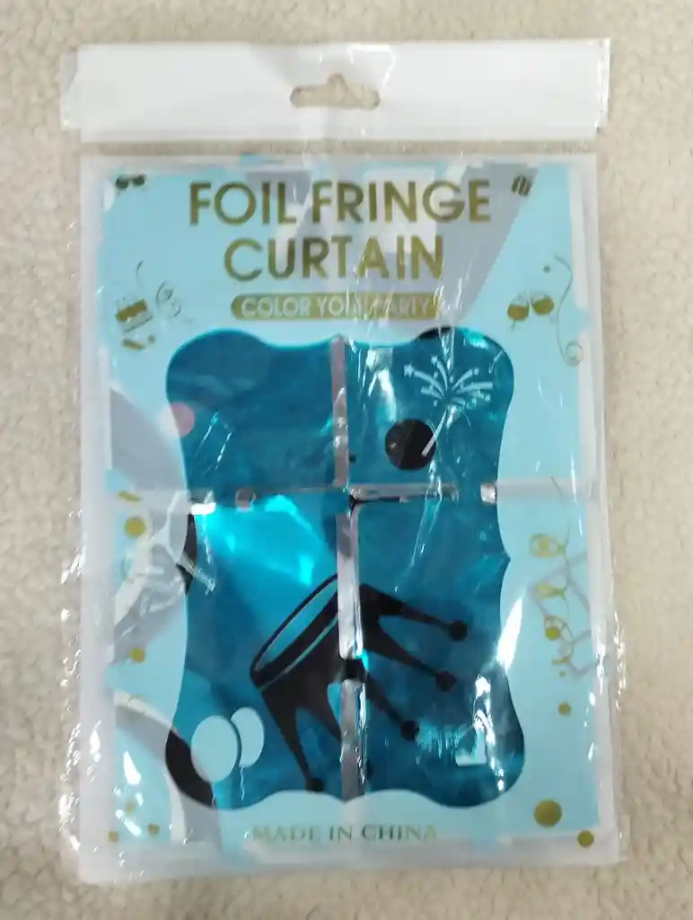 Cortina para decoración 1m de ancho x 2m de largo color azul perlado con diseño de feliz cumpleaños