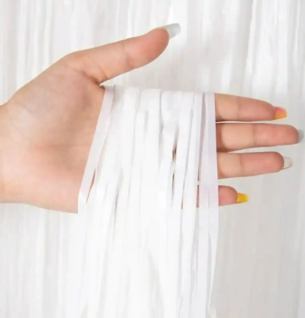 CORTINA CUMPLEAÑOS METALIZADA BLANCA 1m X 2m COD.1733