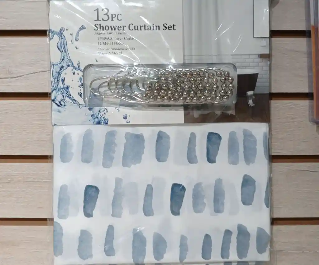 Material: 100% Peva. Medidas: 180*180cm 13 piezas 12 aros de metal 1 cortina Recomendaciones: Limpiar con un paño húmedo.
