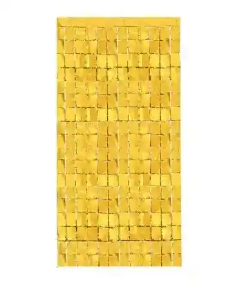 Cortina Metalizada Espejo De Cuadros Dorado