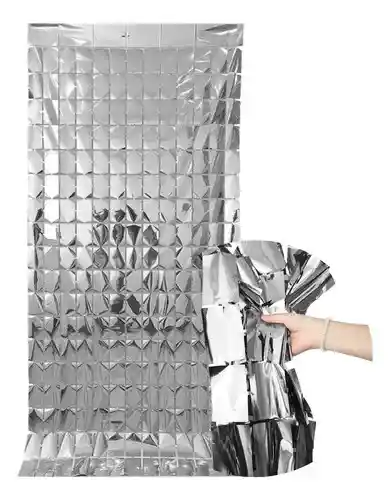 CORTINA DE CUADROS METALIZADA PLATA DE 1 METRO DE ANCHO POR 2 DE CAIDA