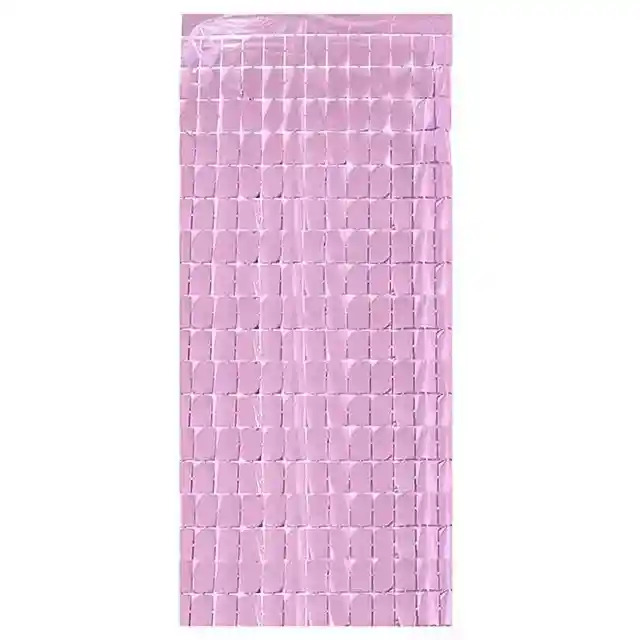 CORTINA METALIZADA PARA FIESTA CUADROS ROSADO. Ideal para Cumpleaños, Halloween, Carnaval Cada unidad tiene un tamaño aproximado de 1mt ancho x 2 mts largo, Excelente Calidad, no trae adhesivo o pegante.