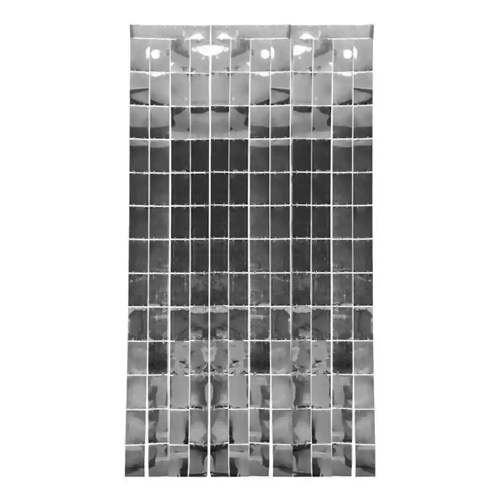 cortina de cumpleaños de cuadro plateada 2 anch por 1 largo