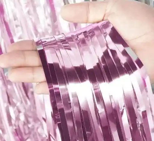 Cortina De Tiras Metalizada Rosada Cumpleaños