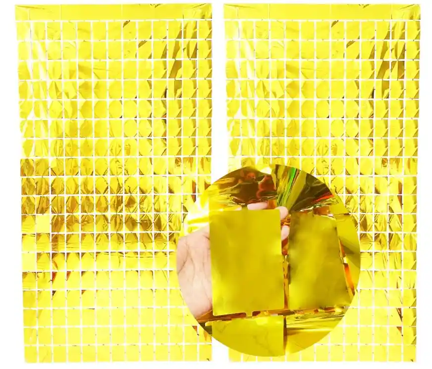 Cortina Decorativa Para Fiestas Metalizada Cuadros – Color Dorado 🎉✨💛 Dale un toque brillante y elegante a tus celebraciones con esta cortina metalizada en cuadros dorados, perfecta para realzar fondos de fotos, entradas, mesas principales o paredes decorativas. Su diseño cuadriculado con acabado reflectante crea un efecto glamuroso y festivo que encantará a tus invitados. Ideal para: ✅ Cumpleaños ✅ Bodas y aniversarios ✅ Baby showers ✅ Fiestas temáticas y de fin de año ✅ Graduaciones 📏 Medidas: 1 metro de ancho x 2 metros de alto aprox. 🪩 Material: plástico metalizado resistente y reutilizable. Con esta cortina dorada conseguirás un ambiente único lleno de luz, estilo y diversión. 🎊🥂