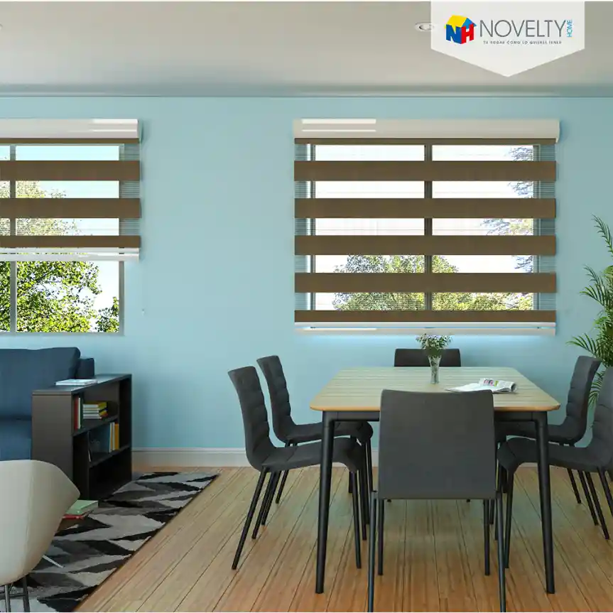 Cortina enrollable compuesta por franjas sólidas y traslúcidas, las cuales van de forma intercalada a lo largo de la cortina. La sobreposición de las líneas sólidas sobre las traslúcidas bloquean el registro hacia el exterior y las sólidas sobre las sólidas dejan libres las traslucidas permitiendo el paso de la luz al interior de los espacios. Su mecanismo a cadena la hace mucho más práctica y fácil de manipular. Sistema de fácil instalación y desinstalación Ideal para: dormitorios, sala comedor, biblioteca y áreas comunes.