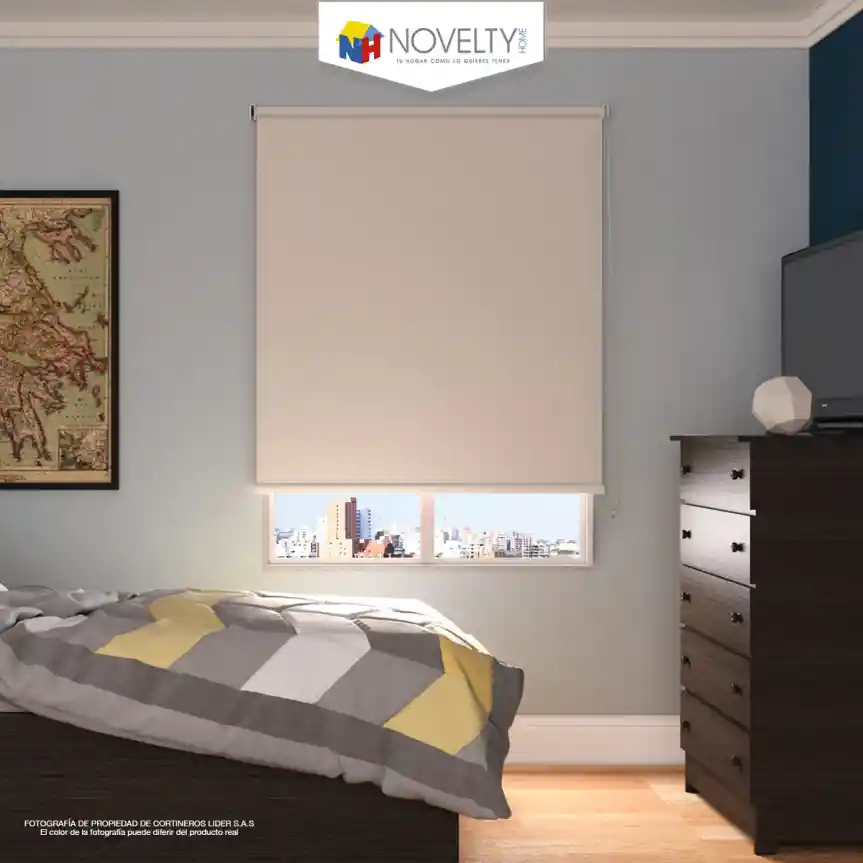 Cortina Enrollable Blackout que propociona total privacidad y oscuridad brindado confort y tranquilidad en sus espacios, ideal para habitaciones, salas de tv, es de fácil limpieza, resistente a la humedad y al moho. Esta compuesta por un mecanismo manual a cadena que sube y baja la cortina.