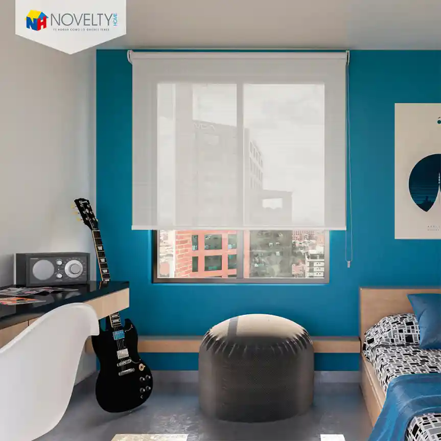 Cortina enrollable en Tela Solar Screen muy funcional que por su tela microperforada permite el ingreso de la luz natural y el contacto visual con el exterior sin abandonar la privacidad al interior. Esta cortina es muy recomendada para oficinas, salas, comedores, cocinas y patios de ropa. Otra de las características de esta cortina es que bloquea el paso de los rayos UV protegiendo los muebles, pisos, pintura y objetos decoración al interior.