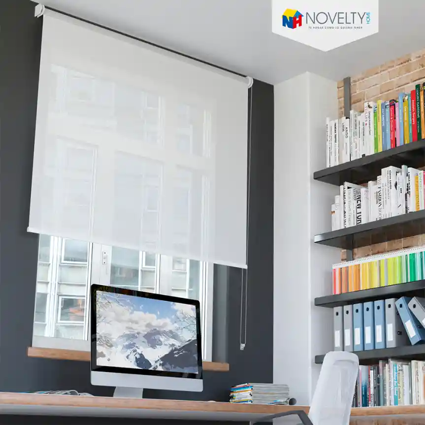 Cortina enrollable en Tela Solar Screen muy funcional que por su tela microperforada permite el ingreso de la luz natural y el contacto visual con el exterior sin abandonar la privacidad al interior. Esta cortina es muy recomendada para oficinas, salas, comedores, cocinas y patios de ropa. Otra de las características de esta cortina es que bloquea el paso de los rayos UV protegiendo los muebles, pisos, pintura y objetos decoración al interior.