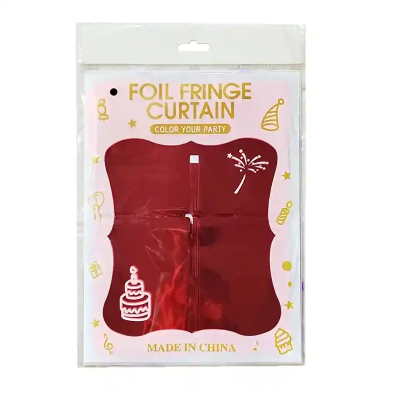 Cortina para fiesta color rojo metalizada en cuadros, medida 1 ancho x 2 largo mts