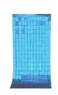 Cortina Metalizada A Cuadros Celeste