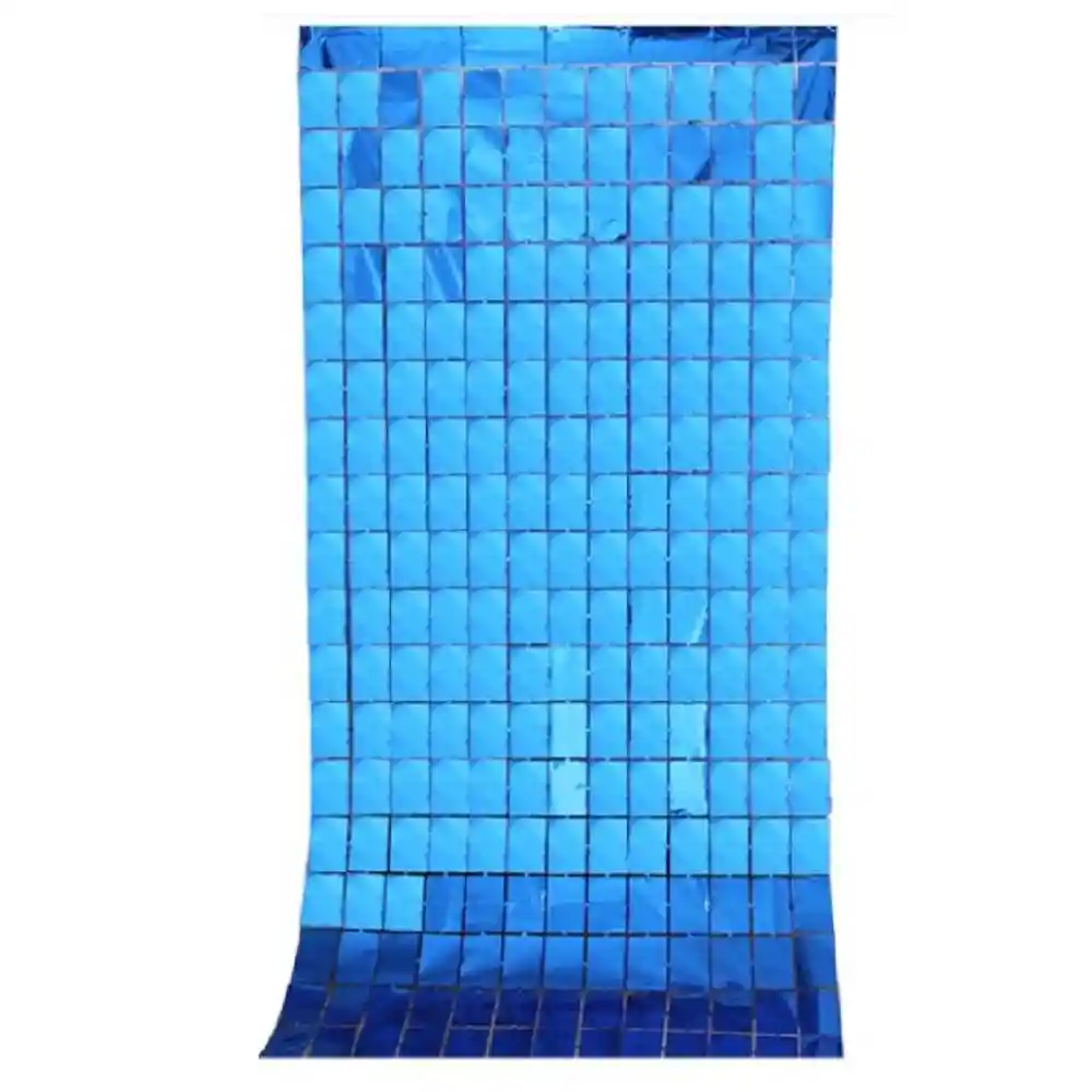 Cortina Metalizada Cuadros Azul Rey, Medidas 2 Metros Alto X 1 Metro Ancho