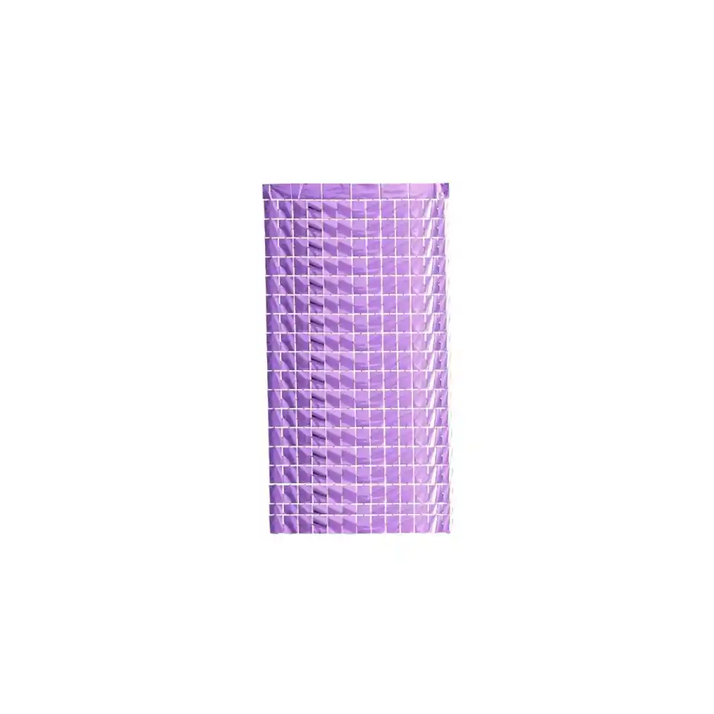 CORTINA METALIZADA CUADROS PEQUEÑOS LILA, TRAE ADHESIVO MEDIDA 1 METRO DE ANCHO X 2 METROS DE LARGO