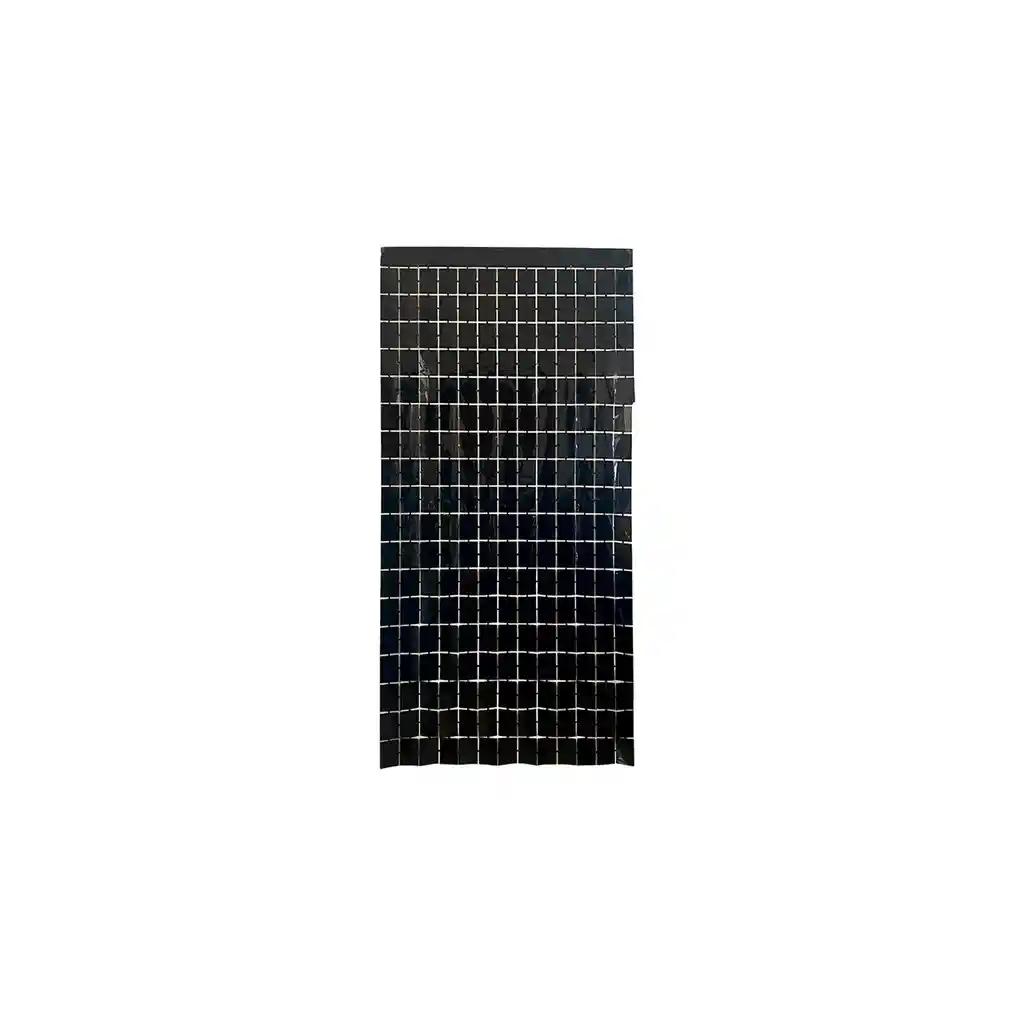 CORTINA METALIZADA CUADROS PEQUEÑOS NEGRA, TRAE ADHESIVO MEDIDA 1 METRO DE ANCHO X 2 METROS DE LARGO