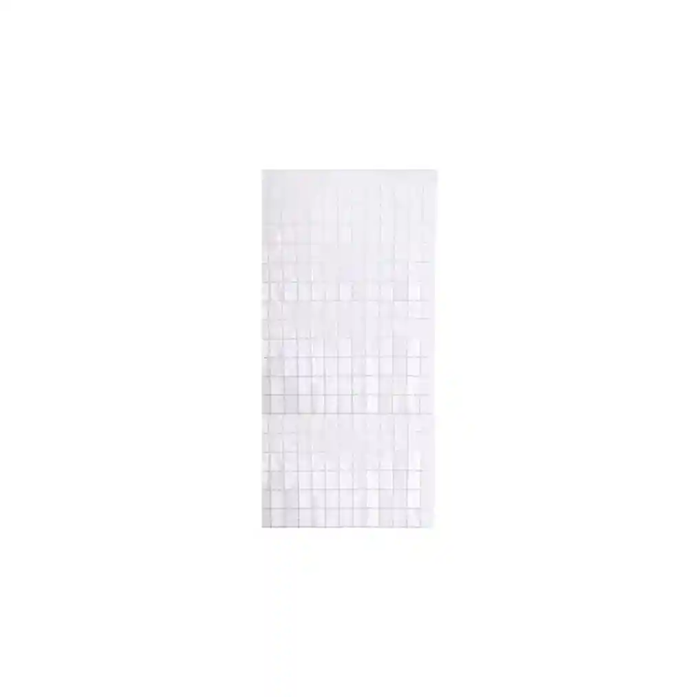 CORTINA METALIZADA CUADROS PEQUEÑOS BLANCA, TRAE ADHESIVO MEDIDA 1 METRO DE ANCHO X 2 METROS DE LARGO