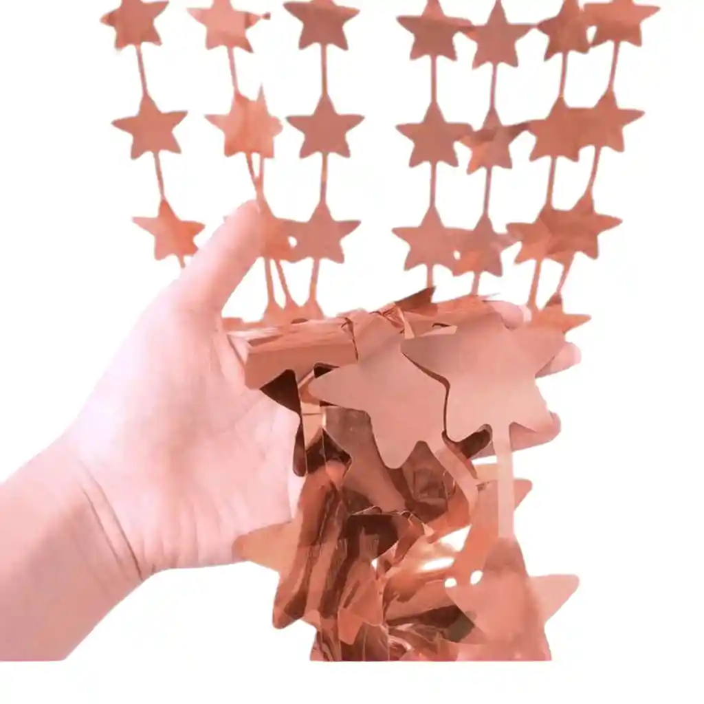 Cortina con caida de estrellas color oro rosa largo de 2 metros ancho de 1 metro perfecta para todas tus ocasiones especiales si deseas adicionar algo mas indicanos y con gusto te colaboramos
