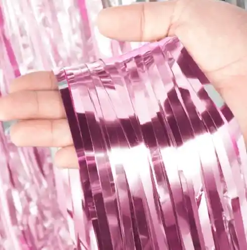 Cortina para decorar metalizada rosado tiras