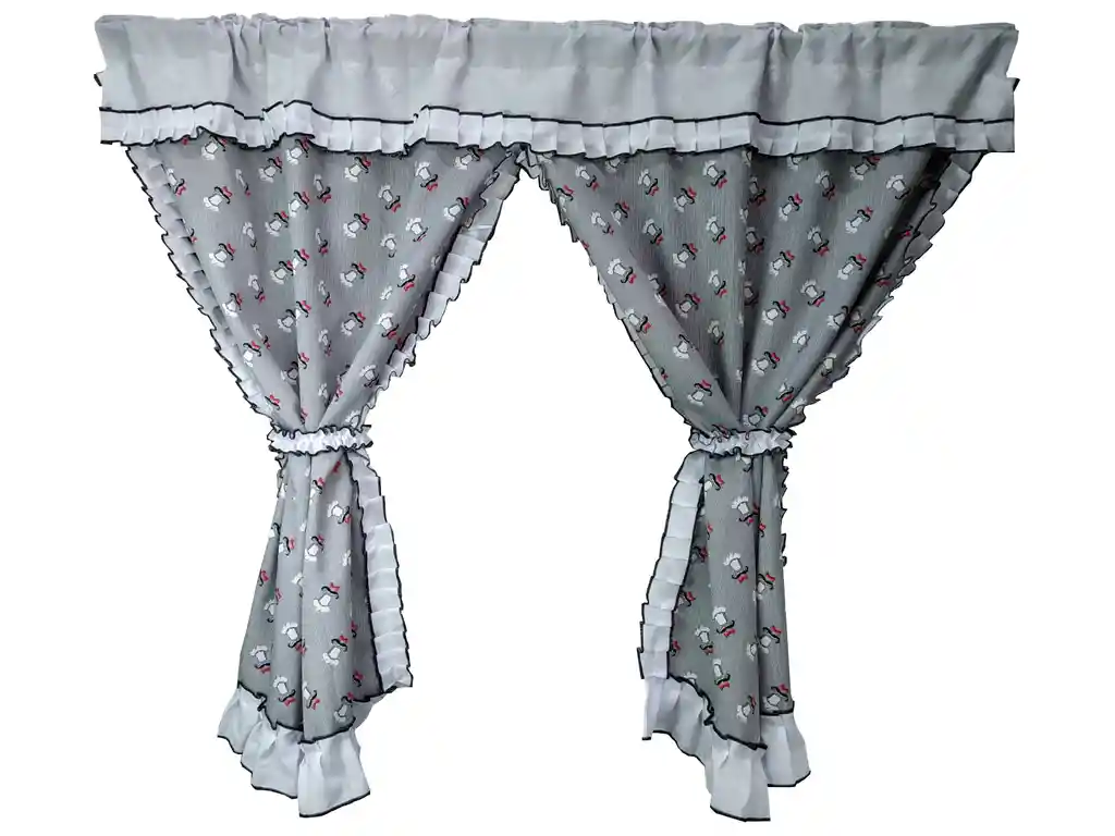 Hermosa cortina para VENTANA de cocina hecha a mano, línea tradicional, por artesanos colombianos cuidado los detalles y con materiales de primera calidad. Materiales: Lino estampado y cenefas en seda poliester. Medidas: Ancho 145 cm +/- X alto 110 cm +/- Medidas de empaque: Ancho: 23 cm Largo: 31 cm Alto: 2 cm Peso: 335 gramos. Cuidados: No usar detergente con blanqueador No dejar en remojo, ni cepille Lavar con prendas de igual tono En máquina, lavar en ciclo suave Secar a la sombra o máquina en el ciclo de planchado.