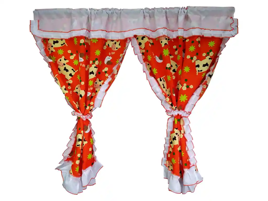 Hermosa cortina para VENTANA de cocina hecha a mano, línea tradicional, por artesanos colombianos cuidado los detalles y con materiales de primera calidad. Materiales: Lino estampado y cenefas en seda poliester. Medidas: Ancho 145 cm +/- X alto 110 cm +/- Medidas de empaque: Ancho: 23 cm Largo: 31 cm Alto: 2 cm Peso: 335 gramos. Cuidados: No usar detergente con blanqueador No dejar en remojo, ni cepille Lavar con prendas de igual tono En máquina, lavar en ciclo suave Secar a la sombra o máquina en el ciclo de planchado.