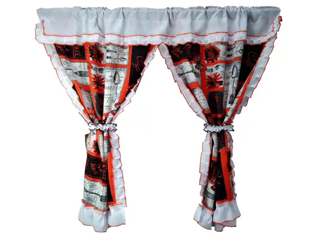 Hermosa cortina para VENTANA de cocina hecha a mano, línea tradicional, por artesanos colombianos cuidado los detalles y con materiales de primera calidad. Materiales: Lino estampado y cenefas en seda poliester. Medidas: Ancho 145 cm +/- X alto 110 cm +/- Medidas de empaque: Ancho: 23 cm Largo: 31 cm Alto: 2 cm Peso: 335 gramos. Cuidados: No usar detergente con blanqueador No dejar en remojo, ni cepille Lavar con prendas de igual tono En máquina, lavar en ciclo suave Secar a la sombra o máquina en el ciclo de planchado.