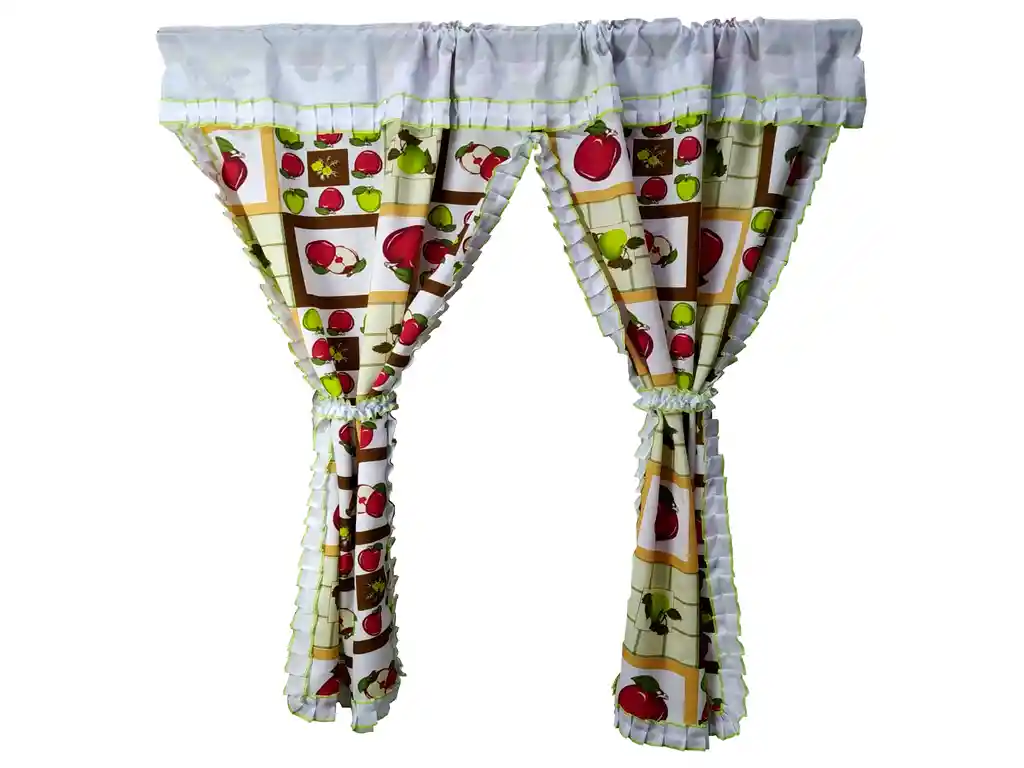 Hermosa cortina para VENTANA de cocina hecha a mano, línea tradicional, por artesanos colombianos cuidado los detalles y con materiales de primera calidad. Materiales: Lino estampado y cenefas en seda poliester. Medidas: Ancho 145 cm +/- X alto 110 cm +/- Medidas de empaque: Ancho: 23 cm Largo: 31 cm Alto: 2 cm Peso: 335 gramos. Cuidados: No usar detergente con blanqueador No dejar en remojo, ni cepille Lavar con prendas de igual tono En máquina, lavar en ciclo suave Secar a la sombra o máquina en el ciclo de planchado.
