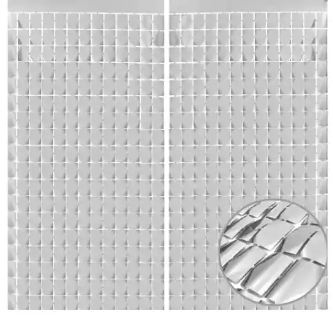 Cortina de cuadros color plateada, ideal para decorar fiestas y eventos con un estilo moderno y brillante. Fácil de instalar, ligera y perfecta para fondos de fotos. ✨🎉