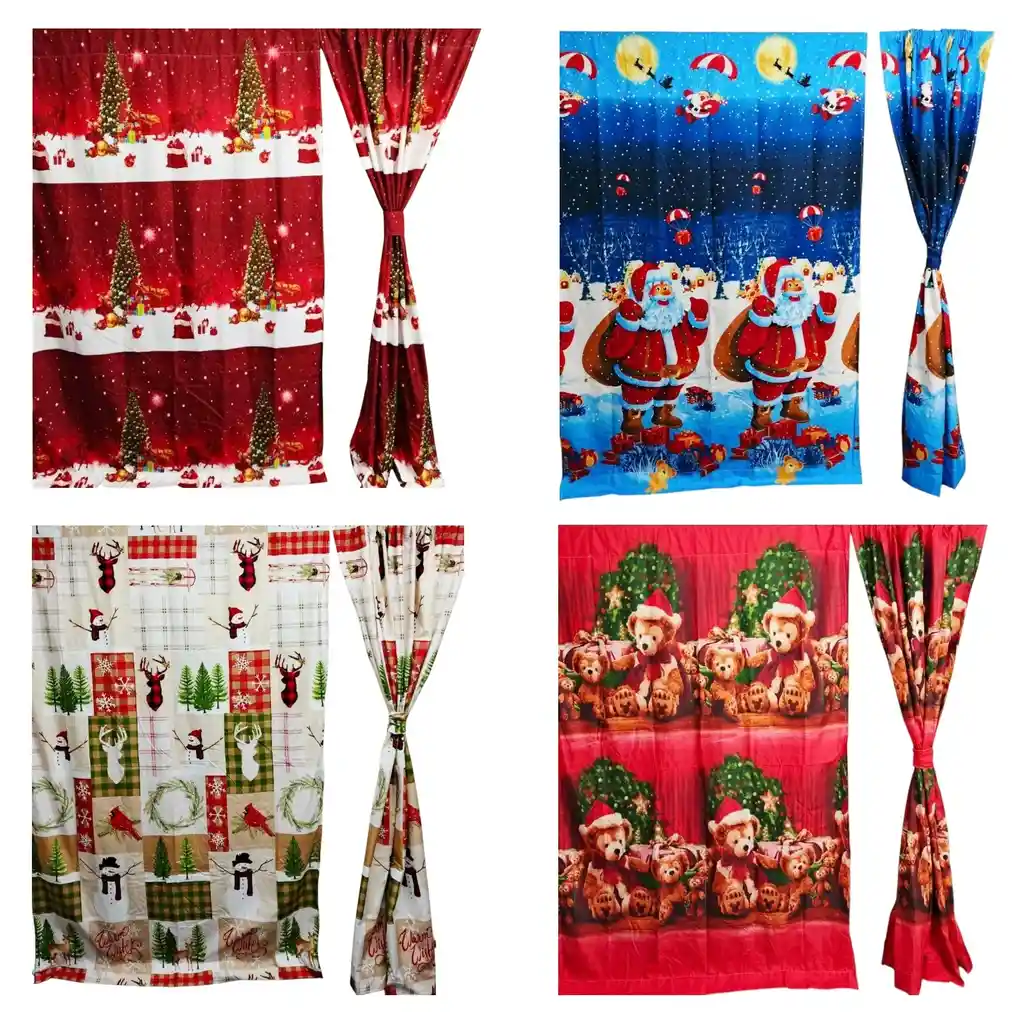 Decora tu hogar con el espíritu de la Navidad. Estas cortinas navideñas llenan cualquier espacio de color, alegría y calidez, creando un ambiente festivo ideal para compartir en familia. Con su diseño temático y lleno de color, transforma tu sala, dormitorio o comedor en un rincón mágico lleno de encanto. Fáciles de instalar y lavar, son el complemento perfecto para darle vida a tu hogar esta temporada. DETALLES Diseño navideño con estampados coloridos y divertidos (te puede llevar un color y diseño similar sujetos a disponibilidad) Ideal para sala, habitación o comedor Fabricadas en tela suave, resistente y fácil de lavar Aportan calidez y alegría a la decoración del hogar Incluye dos paños decorativos y amarra para recoger Tamaño estándar para ventanas domésticas Se pueden usar con tubo o varilla convencional Lavable a máquina o a mano sin perder el color Perfectas para regalar o renovar la decoración navideña Medidas aproximadas 2.10 alto Contiene 2 unidades por paquete *IMPORTANTE* El color del producto puede variar, según la disponibilidad en el momento* **INFORMACION IMPORTANTE **El color de la foto es referencial para que puedas ver los atributos del producto y al mismo tiempo es la opción 1 nuestra de despacho. Pero dejamos la aclaración para que lo tengas presente por si te llegara en otro color. ** NOTA : La foto de este producto ha sido ambientada, por lo cual no incluye ningún adorno, ni accesorios, ni piezas adicionales ni ningún otro elemento que lo acompañan. Observaciones De Garantía: 1 Mes**** La garantía de este producto es exclusivamente por defectos de fábrica, no por daños ocasionados por mal uso o por desconocimiento de uso del cliente. La garantía se tramitará bajo las políticas, términos y condiciones establecidos por la empresa.