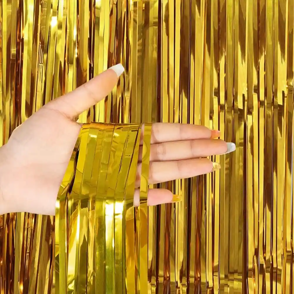 Transforma cualquier espacio en un ambiente elegante y festivo con estas cortinas de flecos doradas ✨🎉. Ideales como telón de fondo, aportan brillo, estilo y un efecto visual impactante para fotos y decoración.