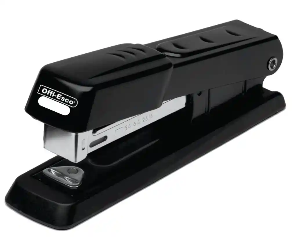 Grapadora grande confort metálica Tiene sacaganchos integrado Con atrapa grapas Grapa 25 hojas recibe 100 grapas 24-6 26/6 Progundidad 90mm Correa de tracción metálica para fácil recarga. Gomas antideslizantes y base metálica Alta calidad y gran resistencia Grapadora metálica