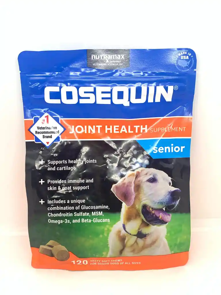 Cosequin Senior Maximum Strength – Suplemento para Salud Articular en Perros Mayores ¿Tu perro senior ya no es tan activo como antes? Cosequin Senior Maximum Strength está especialmente formulado para ayudar a perros mayores a mantener sus articulaciones saludables, mejorar la movilidad y aliviar las molestias causadas por la edad o condiciones como la artritis. Beneficios clave: ✔ Fórmula máxima potencia: Combina glucosamina, condroitina y MSM, ingredientes clínicamente probados para apoyar la salud del cartílago y reducir la inflamación articular. ✔ Mejora la movilidad: Ayuda a tu mascota a moverse con más facilidad, permitiéndole disfrutar de paseos y juegos por más tiempo. ✔ Protección a largo plazo: Promueve la reparación de las articulaciones y previene el desgaste progresivo. ✔ Fácil de administrar: Cápsulas o masticables sabrosos que los perros aceptan sin problema. Recomendado para: Perros mayores de 7 años con rigidez o dificultad para moverse. Mascotas con diagnóstico de artritis, displasia de cadera u otros problemas articulares. Prevención en razas grandes o propensas a enfermedades articulares. ¿Por qué elegir Cosequin? ✅ Marca veterinaria #1 recomendada en salud articular. ✅ Sin sabores artificiales ni conservantes dañinos. ✅ Resultados visibles en 4-6 semanas de uso continuo. ¡Dale a tu perro senior la calidad de vida que se merece!