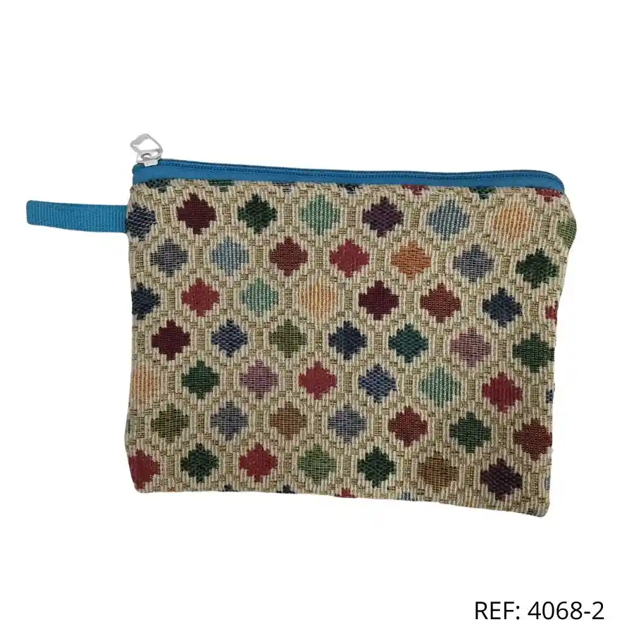 Cosmetiquera tejida con diseño colorido. ¡Estilo artesanal y práctica para uso diario!