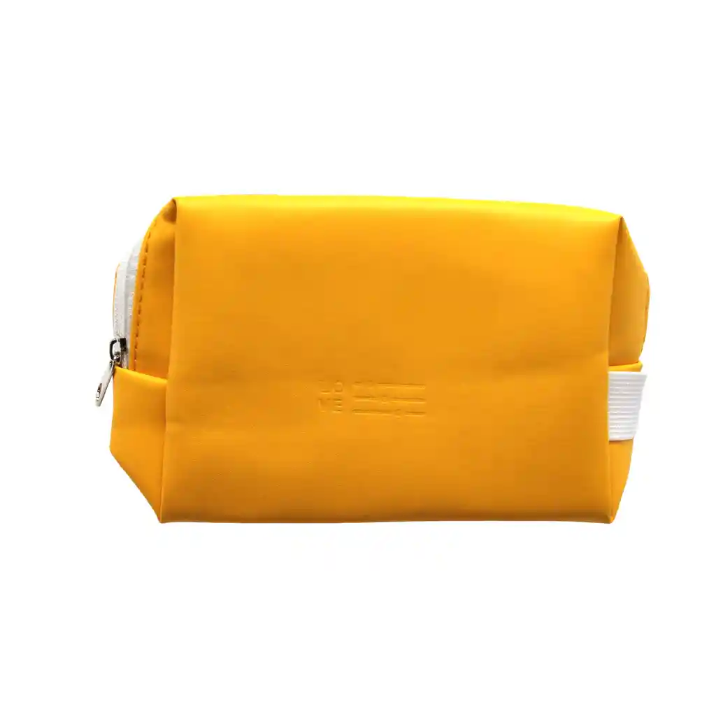 Dale un toque de energía y luz a tu rutina diaria con esta cosmetiquera en un vibrante tono amarillo mostaza. Es el accesorio ideal para quienes buscan destacar, manteniendo sus productos de belleza organizados con un estilo moderno y audaz.