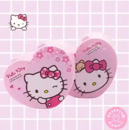 Características probables: Diseño: Forma de corazón: La cosmetiquera tendrá una forma de corazón distintiva. Color rosado: El color predominante será el rosado, en diferentes tonalidades. Motivos de Hello Kitty: Incluirá imágenes de Hello Kitty, posiblemente con detalles como lazos, flores o su característico moño. Detalles adicionales: Podría tener detalles como brillantina, lentejuelas o texturas especiales.