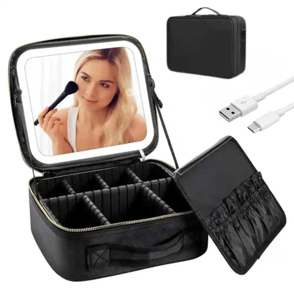 Descubre la solución perfecta para mantener tus cosméticos siempre organizados y al alcance. Este práctico organizador de maquillaje combina funcionalidad y estilo, ideal tanto para uso personal como profesional. Con un diseño compacto y elegante, ofrece una forma eficiente y segura de almacenar tus productos de belleza, ya sea en casa o mientras viajas. Características: -Es un organizador de maquillaje diseñada para guardar cosméticos y herramientas de forma compacta y ordenada. -Cuenta con un espejo con luz LED integrado en la tapa, ideal para maquillarse en cualquier lugar. -Dispone de compartimentos y divisores ajustables para organizar eficientemente los productos de belleza. -Fabricada con materiales resistentes e impermeables, como el nailon, para proteger los cosméticos. -Ideal para uso personal o profesional, y fácil de transportar gracias a su diseño compacto