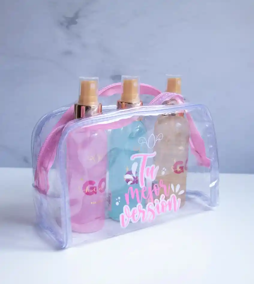 cosmetiquera tansparente gogo, perfecta para llear a tdos lados. tamaño mediano *no incluye productos*