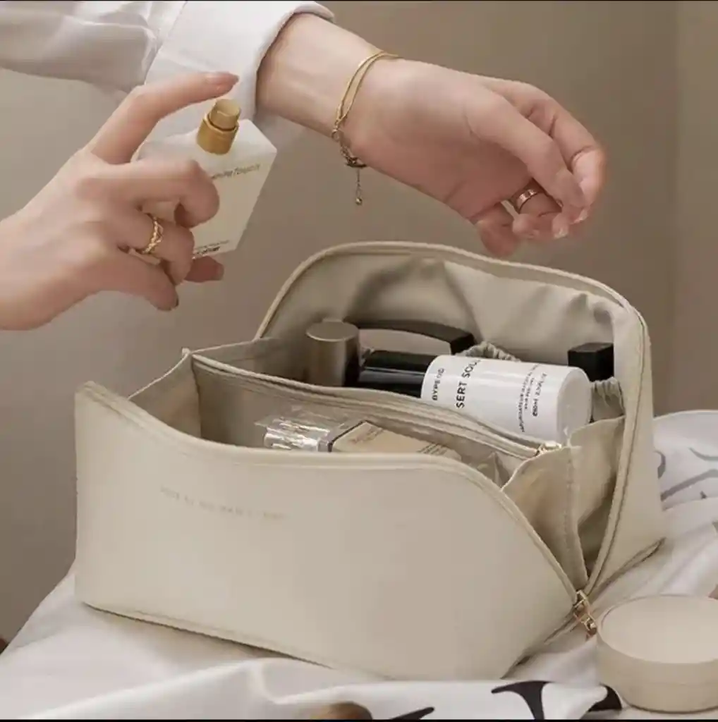 Medidas: 24 x 13 x 14 cm Con gran capacidad y 4 compartimientos, uno de ellos con cremallera interna, es perfecta para mantener tus productos organizados. Versátil y Práctica: Ideal para llevar en tus viajes, a la oficina o para mantener tu tocador en orden. Cuenta con una manija resistente para facilitar su transporte. Uso Multifuncional: 1. Maquillaje: Organiza tus labiales, bases, brochas, polvos compactos y perfumes. Incluye un bolsillo con cierre especial para tus brochas. 2. Cuidado Facial: Perfecta para llevar tus sérums, cremas hidratantes, desmaquillantes y algodones. 3. Aseo Personal: Ideal para crema dental, cepillos de dientes, aceites, cepillo de cabello y productos en tamaño de viaje.