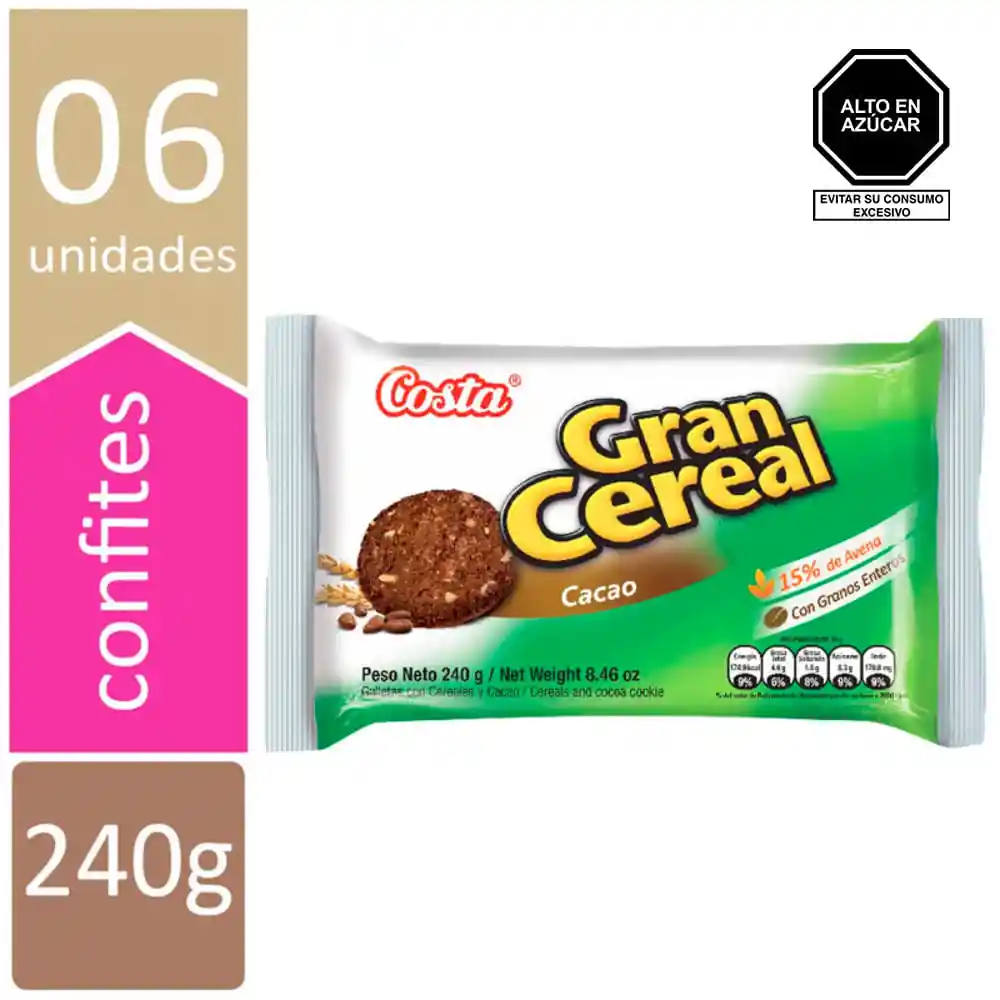 Disfruta de unas deliciosas galletas elaboradas con cereales y cacao, cuentan con un 15% de avena y granos enteros. Contiene 6 unidades.