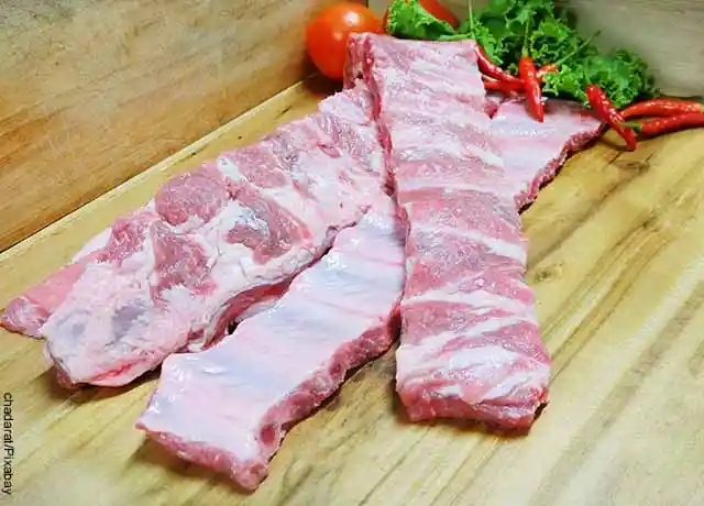COSTILLA CARNUDA DE CERDO , PREVIAMENTE SELECCIONADA EN PRESENTACION POR LIBRA