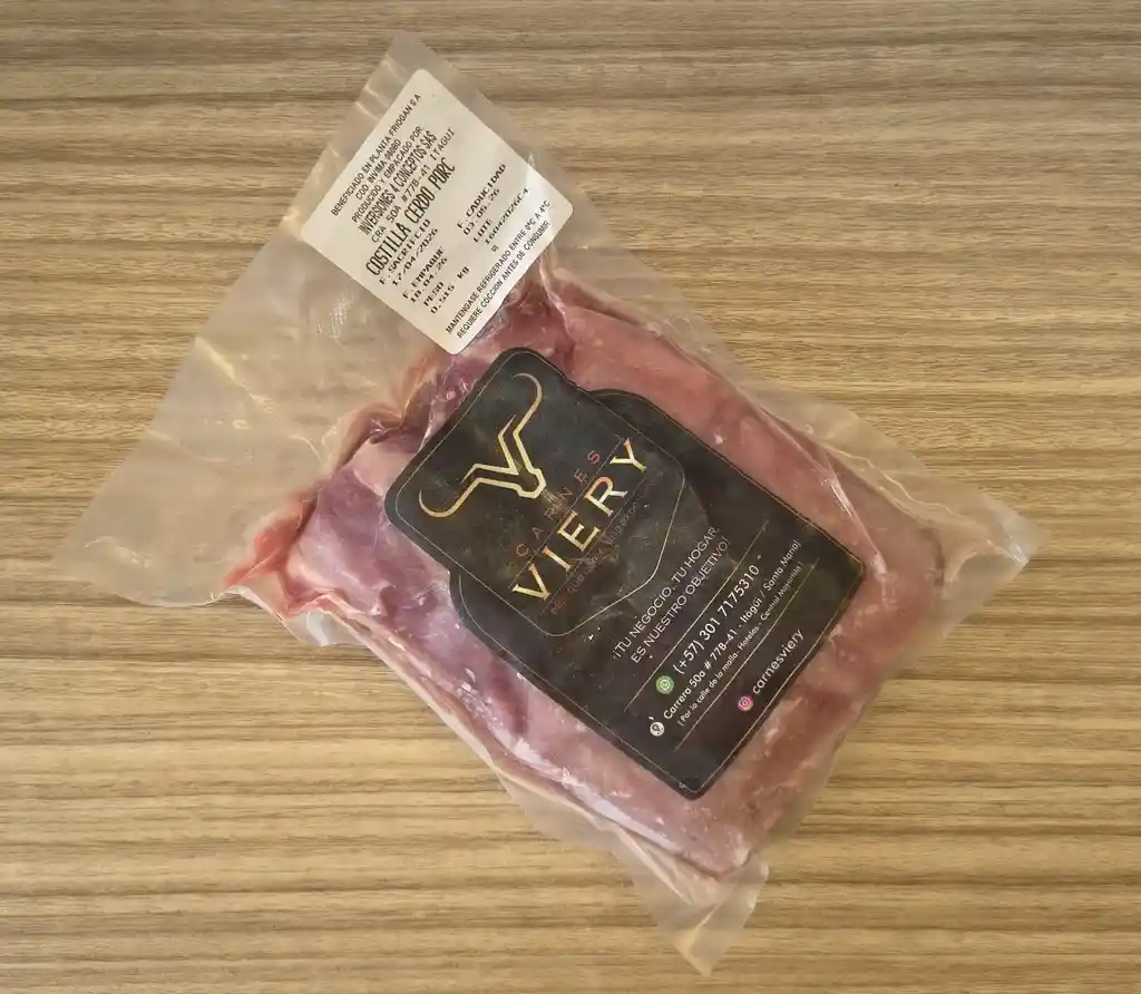 Producto porcionado y empacado al vacío. Cuatro porciones por paquete.