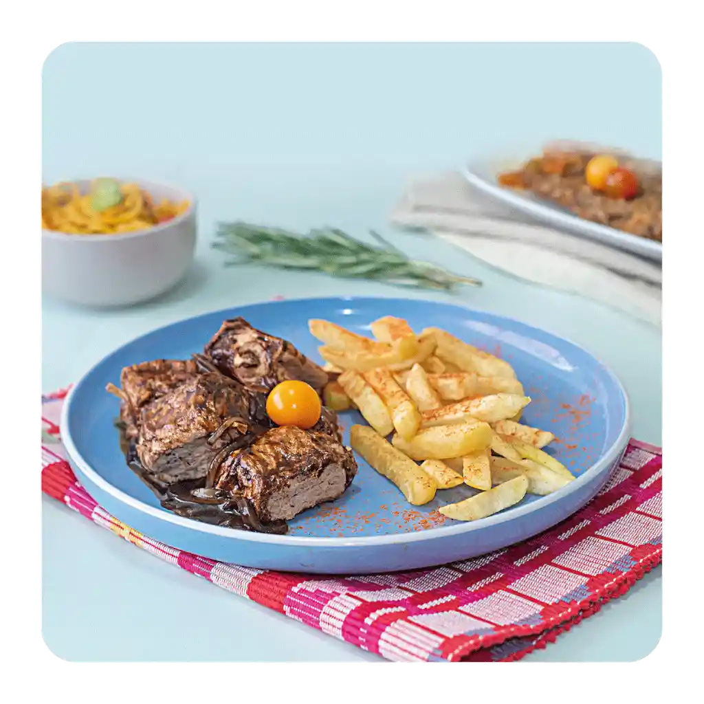 Las Costillitas Vegetales Sabyi son una opción deliciosa para quienes buscan reemplazar la carne tradicional sin renunciar al sabor. Están elaboradas 100% a base de plantas y combinan ingredientes nutritivos como soya, trigo, arveja, linaza y ajonjolí para lograr una textura jugosa y una mordida firme tipo “costilla”. Ingredientes: Soya, cereales (trigo), leguminosas (arveja), linaza, ajonjolí, sal, sabor imitación costilla, colorante (eritrosina), conservante (sorbato de potasio). ¿Por qué elegirlas? -Sabor intenso estilo BBQ. -Textura firme ideal para parrilla, plancha, horno o estofados. -Fuente de proteína vegetal. -Producto 100% libre de ingredientes animales. -Conservación segura y práctica para el día a día. ¿Para quién es apto? Veganos y vegetarianos: al ser completamente vegetal. Personas que desean reducir el consumo de carne: opción flexible y familiar. Amantes de la parrilla: perfectas para marinar y dorar. Dietas basadas en plantas: buena fuente de proteína vegeta. Restricciones alimentarias: No apto para personas alérgicas a la soya, trigo (gluten), arveja o ajonjolí. Modo de uso: Solo adóbalas a tu gusto y cocínalas a la plancha, sartén o parrilla hasta que estén doradas. Perfectas para salsas BBQ, bowls, arepas, tacos o platos caseros llenos de sabor.
