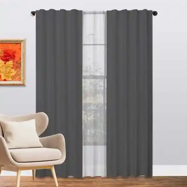 Cotidiana Kit Cortina Visillo Tela Lino Gris Oscuro 140 x 220
