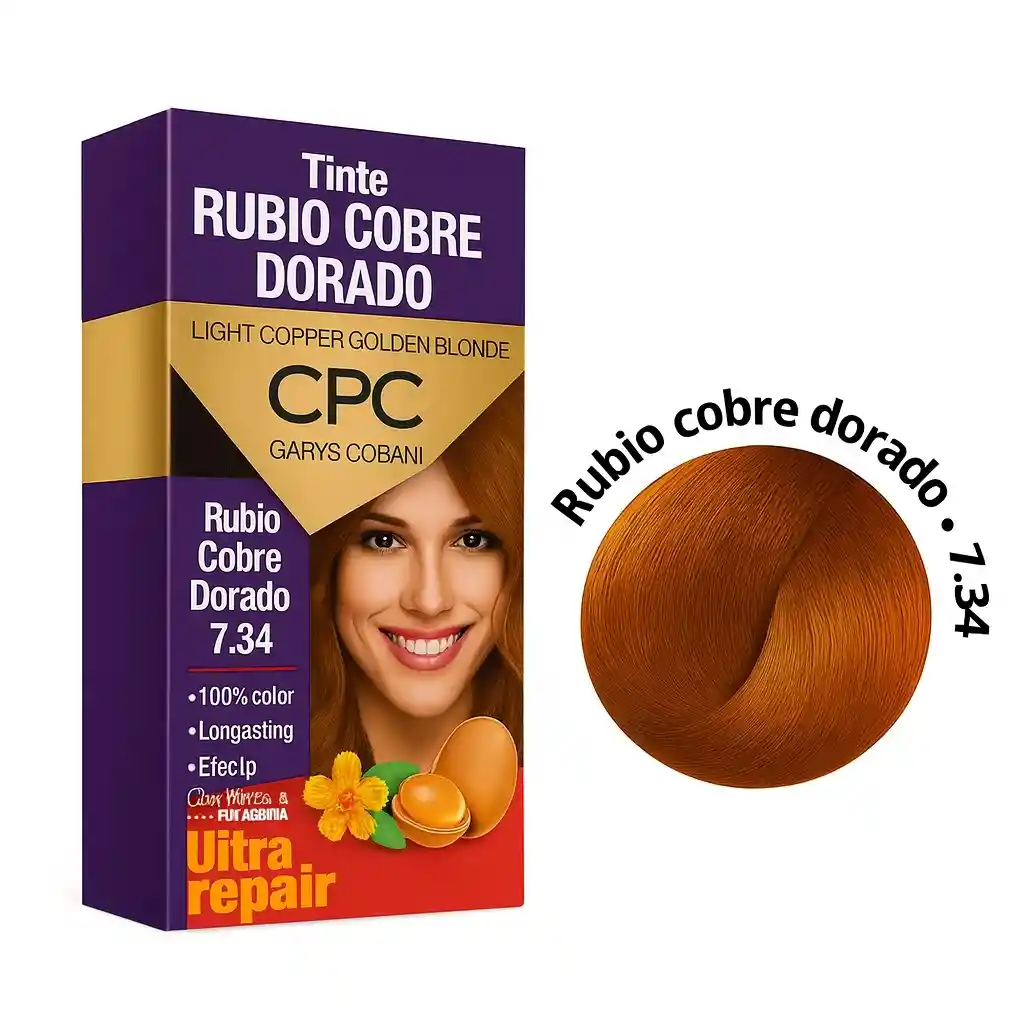 🧡 Tinte CPC Meicys Rubio Cobre Dorado 7.34 – Coloración Permanente Ultra Repair 🌞 Color cálido, brillo radiante y nutrición profunda El Tinte CPC Meicys 7.34 Rubio Cobre Dorado ofrece un tono rubio medio con reflejos cobrizos y dorados, que aporta calidez, luminosidad y un toque sofisticado al cabello. Su fórmula profesional Ultra Repair garantiza color intenso, duradero y 100 % cobertura de canas, mientras hidrata, nutre y protege la fibra capilar para un resultado saludable y brillante. ✨ Beneficios principales 🧡 Tono rubio cobre dorado natural y luminoso, con reflejos cálidos. 💯 Cobertura total de canas, incluso en cabellos resistentes. 💧 Nutrición e hidratación profunda, gracias al aceite de coco y almendras. 🌟 Brillo extremo y color uniforme con la tecnología Nutricolor. 🧬 Fórmula Ultra Repair: protege, repara y mantiene la suavidad del cabello. 🧪 Contenido del kit 1 tubo de Tinte CPC de 50 ml 1 sachet de Crema Oxidante (Oxi Cream) de 75 ml 💆 Modo de uso Mezcla el tinte con la crema oxidante hasta obtener una mezcla homogénea. Aplica sobre el cabello seco y sin lavar. Deja actuar de 30 a 40 minutos, según la intensidad deseada. Enjuaga con abundante agua y aplica acondicionador o tratamiento nutritivo. 🌿 Ingredientes naturales 🥥 Aceite de coco: hidrata, suaviza y aporta brillo. 🌰 Aceite de almendras: nutre y fortalece la fibra capilar. 💎 Sistema Nutricolor: fija el color y prolonga su intensidad. 🪶 Ideal para Personas que buscan un rubio medio con reflejos cobrizos y dorados llenos de luminosidad. Cabellos con canas, secos o dañados, que necesitan color y nutrición. Uso doméstico o profesional.