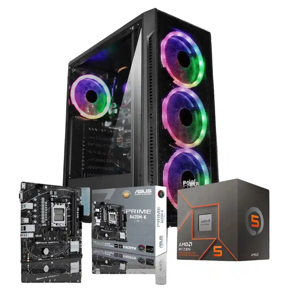 1. PROCESADOR AMD RYZEN 5 8600G Rendimiento superior con 4.3 GHz de velocidad, ideal para gaming y tareas exigentes. 2. PLACA BASE ASUS A620M Compatibilidad robusta con las últimas tecnologías, ofreciendo estabilidad y eficiencia. 3. MEMORIA DDR5 DE ALTA VELOCIDAD 16GB ADATA DDR5 a 4800 MHz para multitarea fluida y tiempos de respuesta rápidos. 4. ALMACENAMIENTO SSD M.2 PCIE 512GB con velocidades optimizadas, asegurando arranques y cargas ultrarrápidas. 5. DISEÑO COMPACTO Y MODERNO Montado en una caja ATX Power Group X18, combina rendimiento y estética profesional.