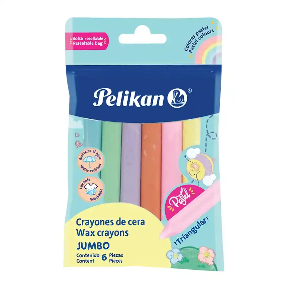 Crayon Triangular Pastel Jumbo x6 unidades, textura suave y resistente al agua
