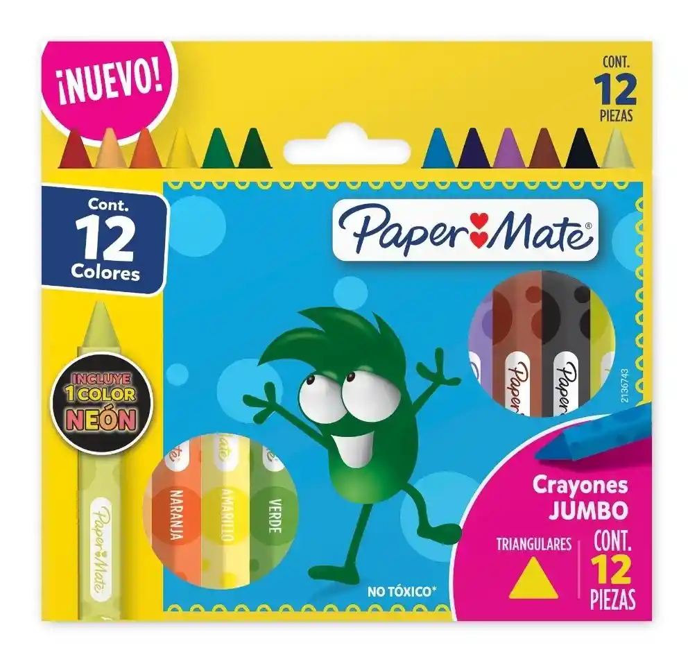 DESCRIPCIÓN DEL PRODUCTO Modelo: Crayones. - Comodidad: debido a su forma ergonómica y triangular especialmente desarrollada para ofrecer máximo control en la escritura. Combinado con una punta mejorada gruesa, aseguran un colorido de calidad en todo momento. - Seguridad: Su mina está diseñada para durar mucho más, debido a que no se parte con facilidad. Es super resistente e ideal para niños en etapa escolar. Características Incluye 12 unidades de lápices de colores.