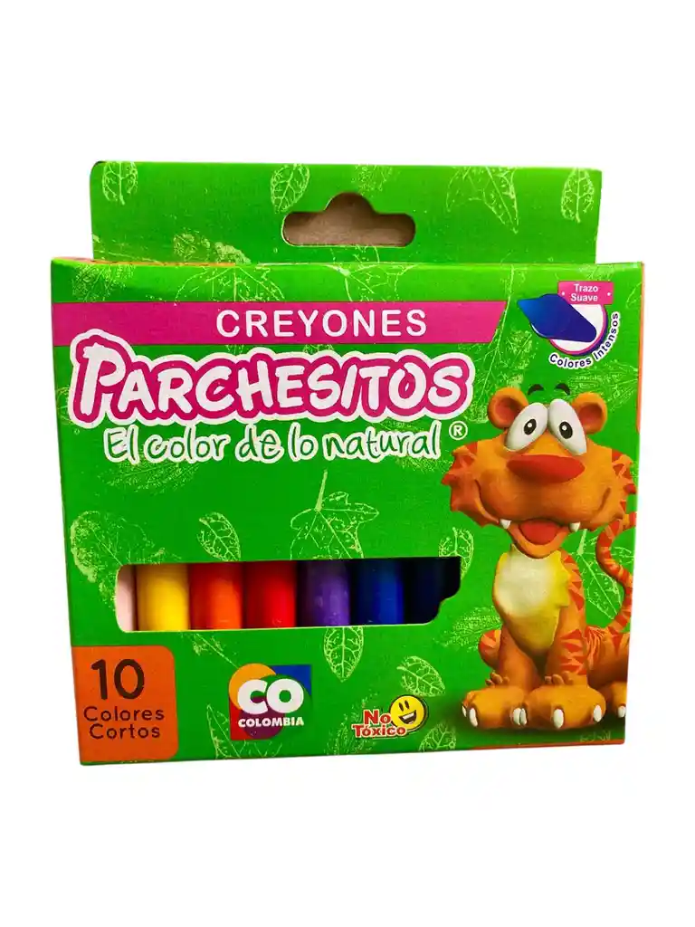 Crayones Parchesitos X 10 Unidades colores cortos -MARCA: Parchesitos -CRAYONES CON EXCELENTE PIGMENTACIÓN -MAYOR COBERTURA -MEZCLABLES -COLORES INTERESANTES Y BRILLANTES -COLRES SURTIDOS -MUY RESISTENTES - No mancha. - Colores firmes. - No tóxica.
